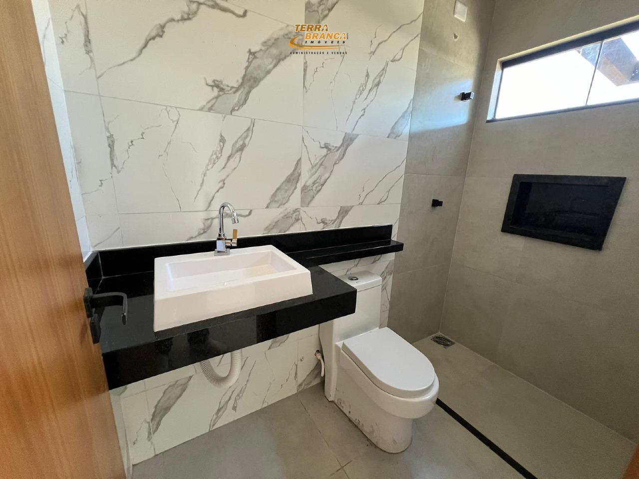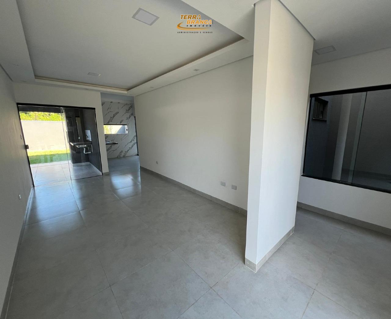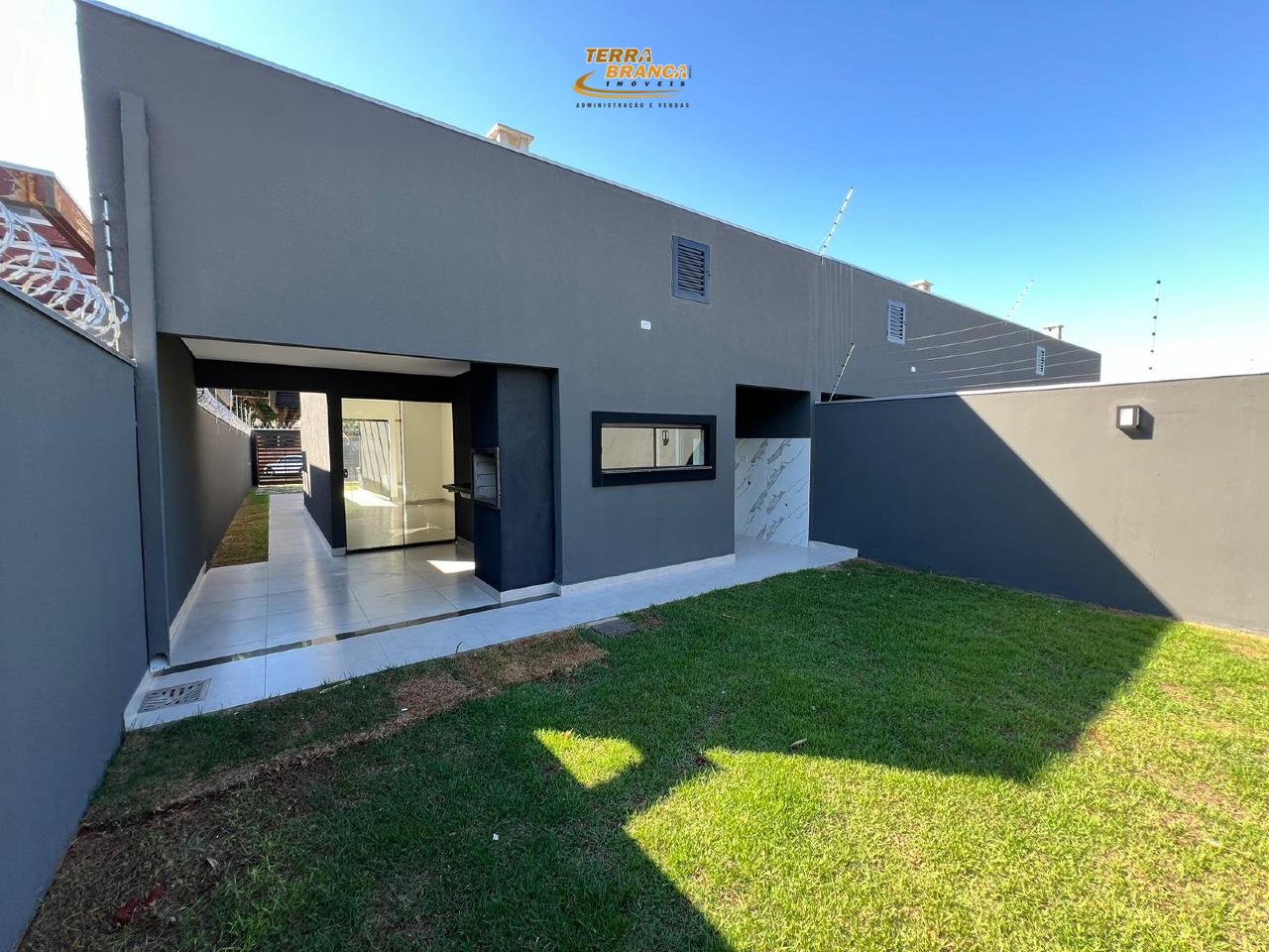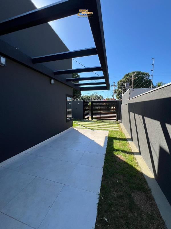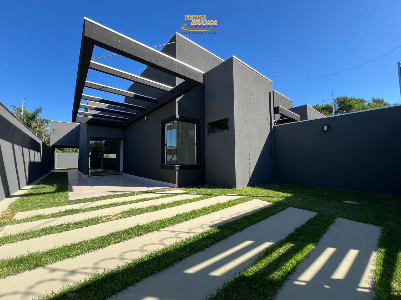 Projeto moderno e diferenciado, com a sala integrada a varanda gourmet com excelente aproveitamento, corredor bem aproveitado, sala para 2 ambientes, cozinha, lavanderia, estendal, wc social, varanda gourmet, 2 quartos e 1 suíte, pergolado com 20m², asfalto, rede esgoto instalada, iluminação em led, 3 vagas na garagem, jardim de inverno , interfone, cerca elétrica e concertina instalados